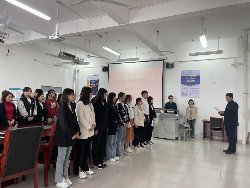 宣誓仪式在庄严的《义勇军进行曲》中拉开序幕。首先,在学生党支部负责同志的领誓下,新发展的预备党员进行了入党宣誓,老党员重温入党誓词,80个字12句话的誓词是他们入党后对党的第一个承诺。随后,预备党员代表发言表示要树立终身学习的观念,提高自己党性修养,全心全意为人民服务,时刻保持共产党员的先进性和先锋模范作用,以优秀共产党员为标杆,努力使自己成为一名优秀共产党员,最后党总支负责同志发表总结讲话,他在对新党员表示祝贺的同时,也对大家提出了明确要求:希望广大党员同志加强理论学习,投身实践;坚定理想信念,时刻牢记使命;以党员标准严格规范自己的言行,自觉接受党组织的教育、管理和监督。最后他表示作为一名党员,要进一步强化党员意识、使命意识,把学习贯彻习近平系列讲话精神焕发出的政治热情转化为内在动力,发挥青年党员朝气蓬勃、奋勇争先的生力军作用,展现百年大党的勃勃生机与活力。