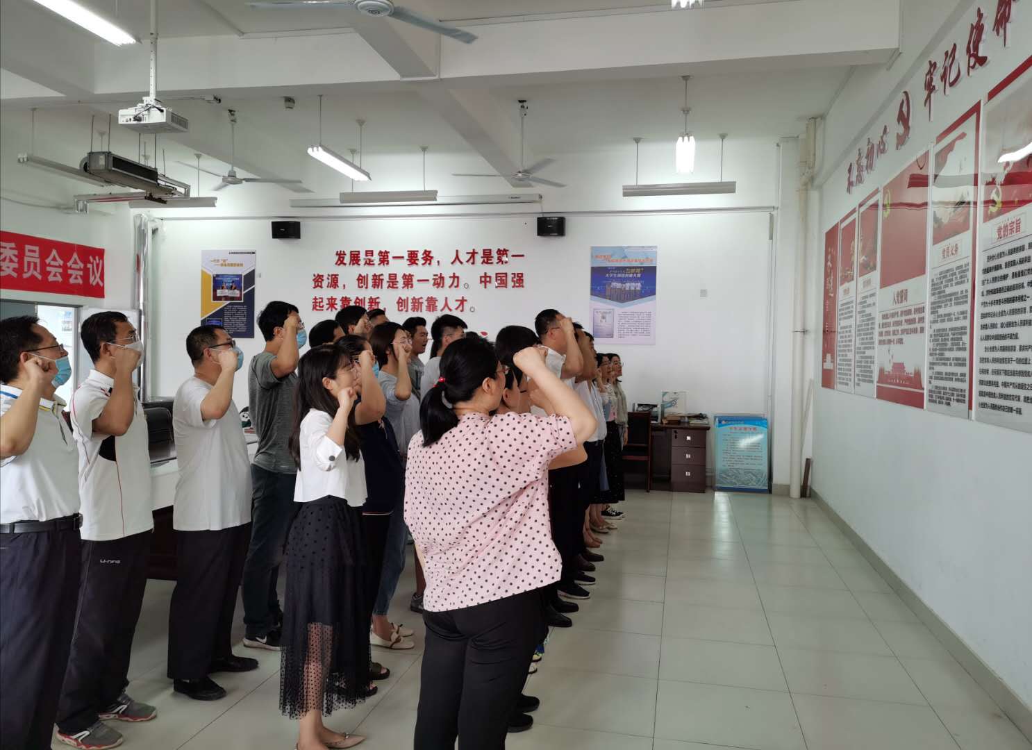 为进一步强化基层党员干部的学习教育,增强党员教师队伍的凝聚力,根据学院党委《关于组织开展庆“七一”系列活动的通知》要求,6月25日,yl8858永利集团党总支组织全体党员教师在木泽楼B207党员活动室开展了“重温誓词忆入党初心永葆先进本色作贡献”活动。