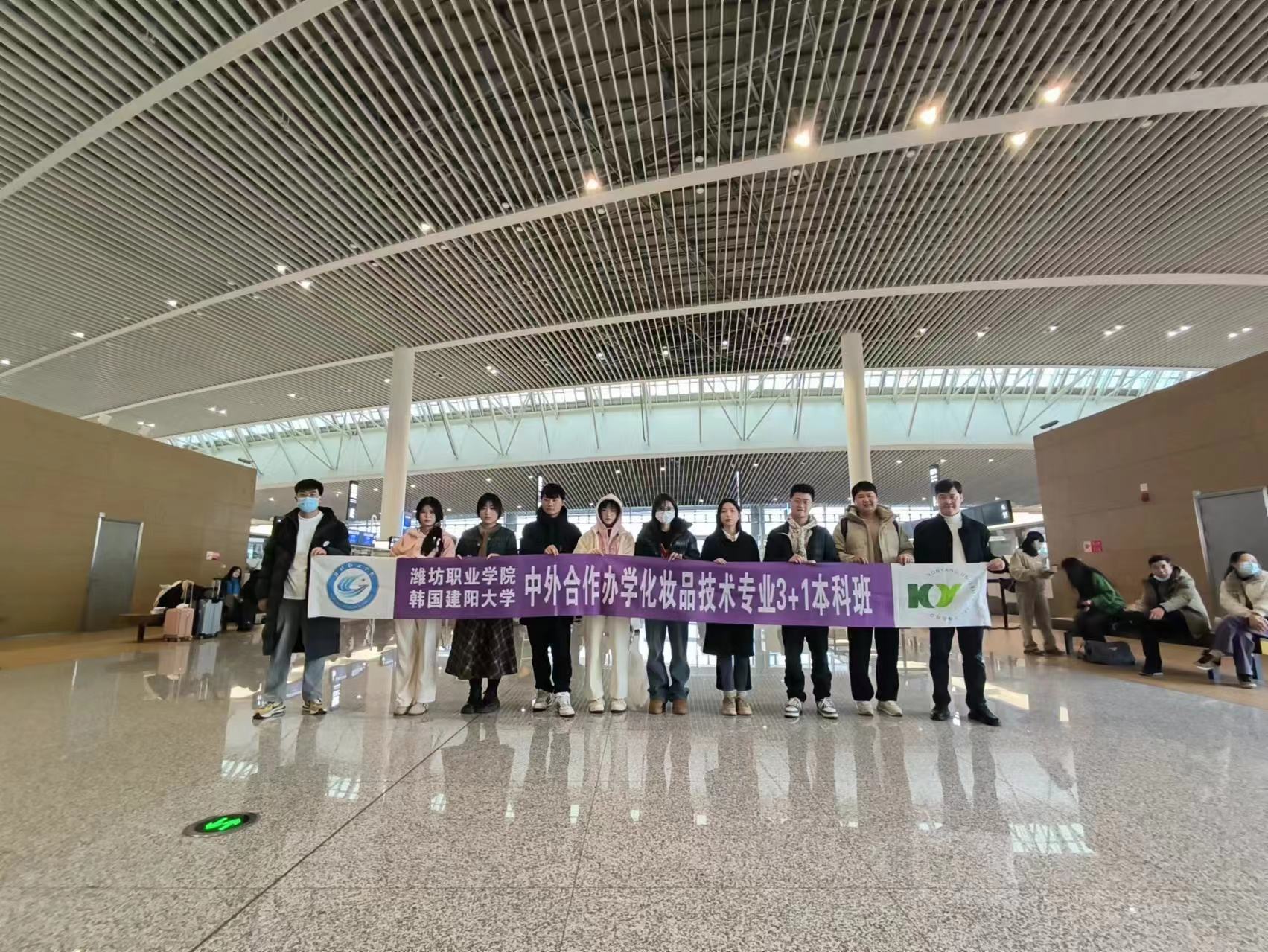 yl8858永利集团为进一步深化与韩国建阳大学的合作与交流,为合作学生提供继续升学深造的机会。2月29日,2021级化妆品技术中韩合作专业8名优秀学生启程前往韩国建阳大学开展为期半年的学习。