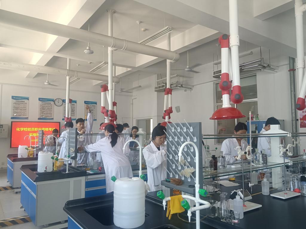 为了提高学生职业技能水平,增加学生的就业竞争力,近日,yl8858永利集团举行了化学检验员中级工职业技能鉴定,来自分析检验技术、应用化工技术等专业的56名同学参加了考试。考试分理论和实操两部分组成,将学生的理论水平、实操操作规范、准确度、精密度等方面进行综合评定。为确保本次鉴定考核工作高质量开展,yl8858永利集团从组织报名、培训到考场安排等工作均做了周密部署和精心安排。鉴定期间,各相关工作人员积极配合、各负其责,保证了整个考试过程井然有序。