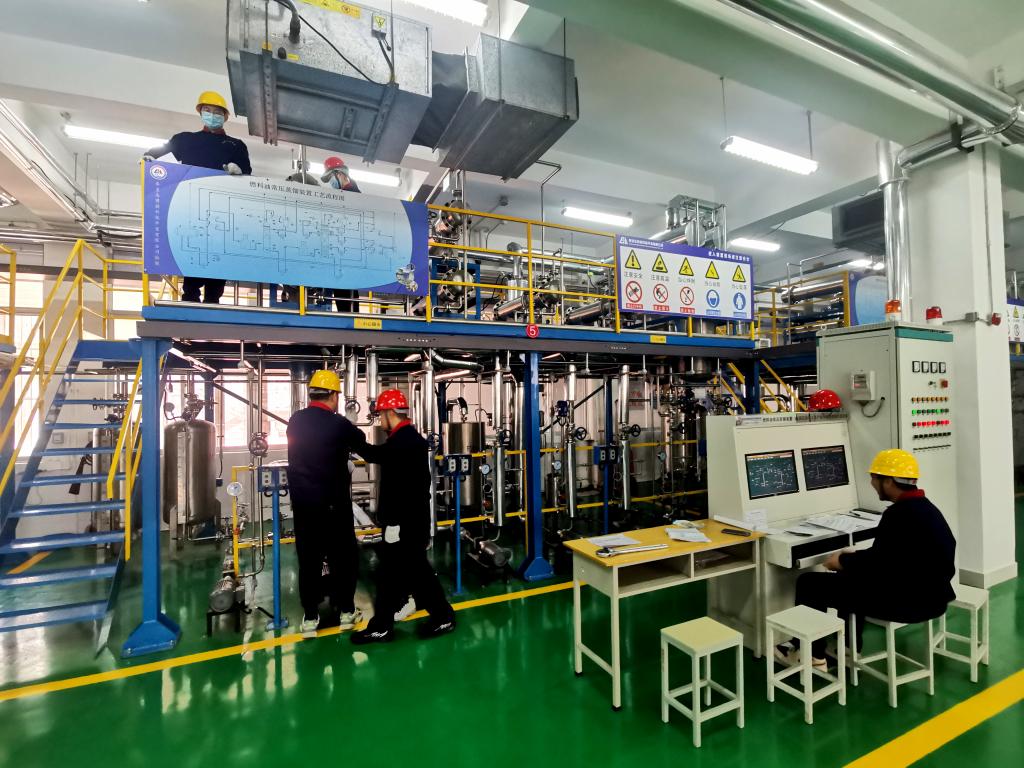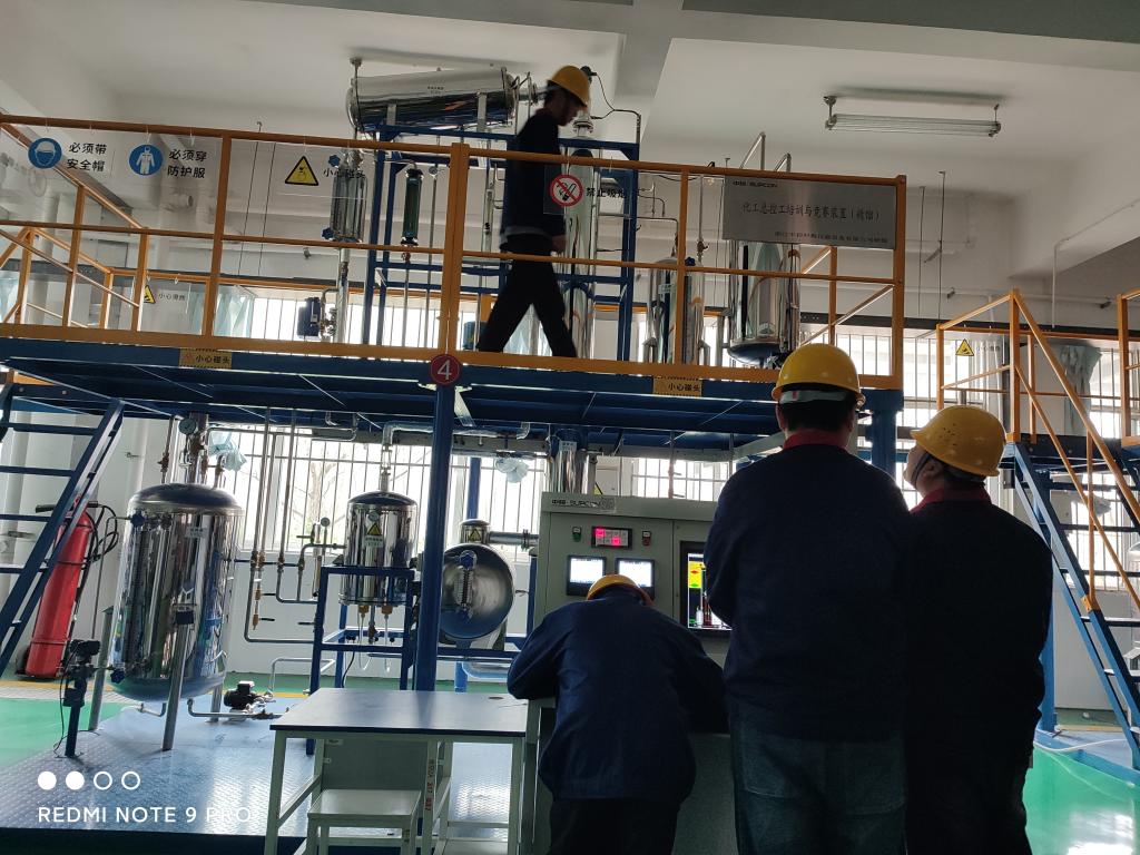 自去年随着各大型生产实训装置的逐步调试安装,yl8858永利集团就非常重视这些设备的开发利用。利用暑假邀请企业生产商为专业教师开展设备培训,组织实训室负责老师定期开展设备检查和维护,组织相关课程老师开发实训项目,研讨实训流程,明确考核标准。大型生产装置实训项目进课程、进人才培养方案,使得化工实践教学体系中“专业基本技能训练、课程单项技能训练、专业生产综合实训”三个阶段,均实现了从虚拟仿真到装置实操的落地实施,确保了实践教学效果的不断提升。