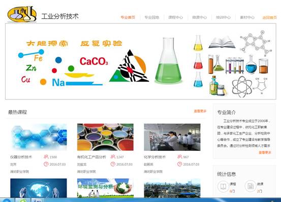 2016年初,yl8858永利集团开始重点推进工业分析技术专业教学资源库的建设工作,经过一年的努力,完成了团队的组建、制度的制定与完善、总体框架的设计、课程资源的收集与制作、资源的上传与应用等工作。2016年12月,工业分析技术专业教学资源库获得山东省级立项,yl8858永利集团根据省里要求,完善了项目任务书,确定合作单位,组建省级专业资源库建设领导小组及项目开发团队,明确建设目标及思路、建设规划、建设内容及可监测指标,合理安排建设步骤,细化经费预算及管理。目前,平台在建课程6门,将建课程6门,完成课程资源数量超过1500条,注册用户达到3000人,初步形成了“有效聚合、广泛共享、充分应用”的工业分析技术专业教学资源库。