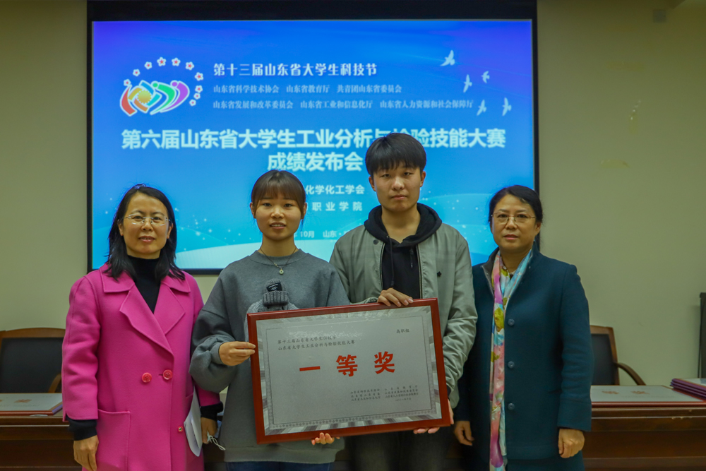 第十三届山东省大学生科技节第六届工业分析与检验赛项于10月25日至28日在威海职业学院举行,我院刘玉婷、王乐组成的高职代表队获团体一等奖,刘玉婷同学获个人一等奖;李雪贞、崔荣伟两名教师获“优秀指导教师”称号。