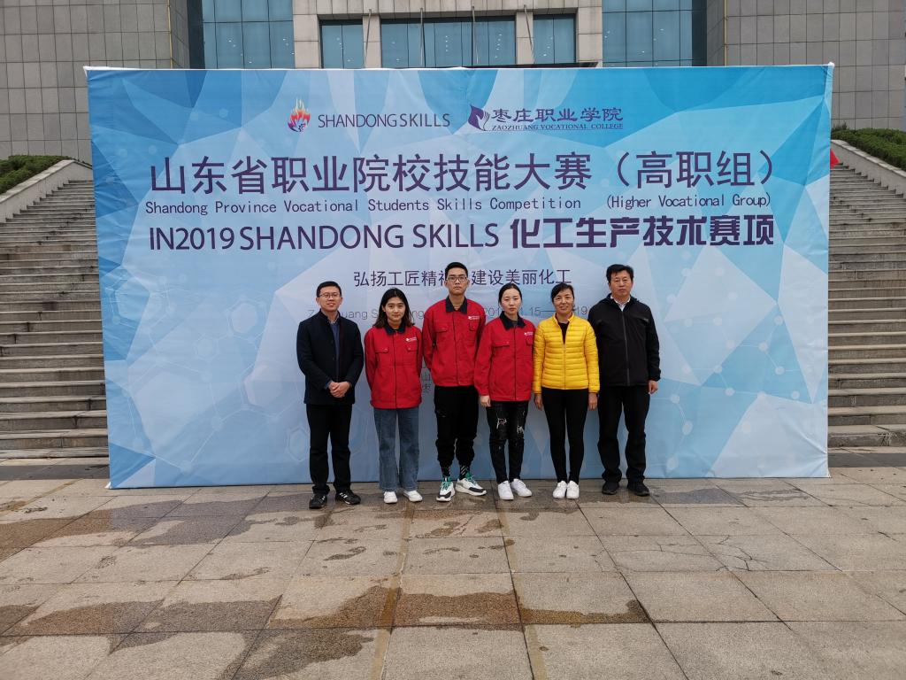 11月15日至11月17日,2019年山东省职业院校技能大赛化工生产技术赛项(高职组)在枣庄职业学院举行,来自全省12所高职院校的36名选手参加比赛。经过激烈角逐,产生了团体一等奖1名、团体二等奖2名、团体三等奖3名。我院周岩、张雪、王宏龙3名学生组成的代表队荣获团体二等奖第1名佳绩。