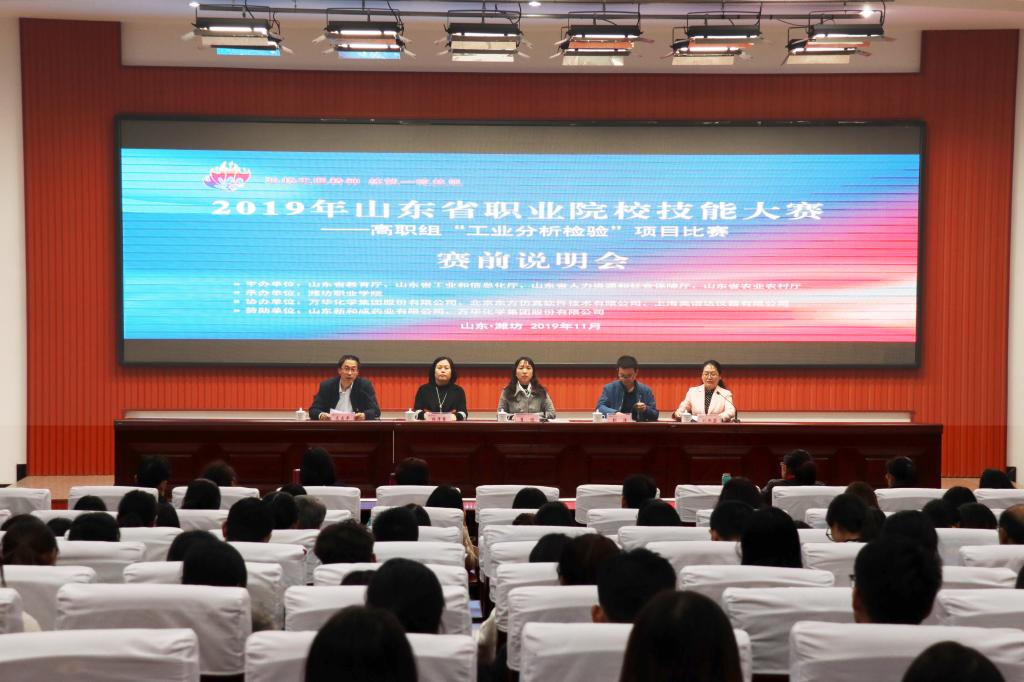 11月13日下午,2019年山东省职业院校技能大赛高职组工业分析检验赛项赛前说明会在我院滨海校区清泽楼报告厅举行。来自全省29支代表队的领队、指导教师、参赛选手参加了会议。yl8858永利集团院长高庆平主持会议。大赛裁判长、天津渤海职业技术学院专家崔迎,大赛督导员刘浩、林泽慧,我院教务处处长刘泓蔚出席会议。