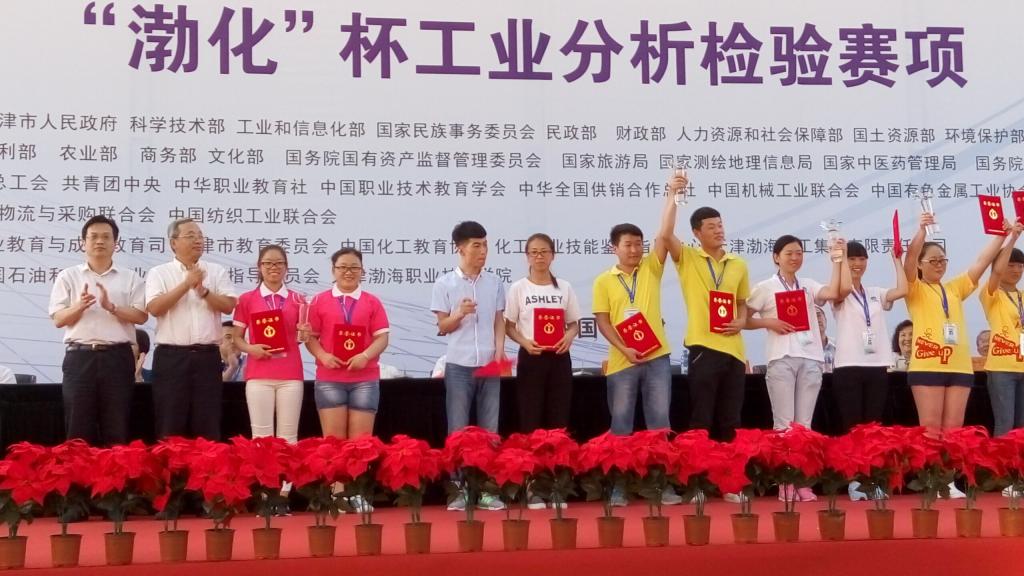7月3日,2015年全国职业院校技能大赛工业分析检验赛项在天津渤海职业技术学院落下帷幕。至此,我院化工类赛项代表山东省出战国赛的四个参赛项目全部结束。本届国赛我院化工类赛项成绩实现新的突破,四支参赛队全部获奖,创历年参赛最好成绩,其中工业分析检验赛项高职组获团体一等奖,赵佃英,邹芳老师获优秀指导教师奖;化工设备维修赛项高职组获团体二等奖,学生朱林森以全国第三名的成绩获得技师资格,成为山东省首个学生身份的化工检修钳工技师;化工设备维修赛项中职组获团体三等奖;化工生产技术中职组获团体三等奖。
