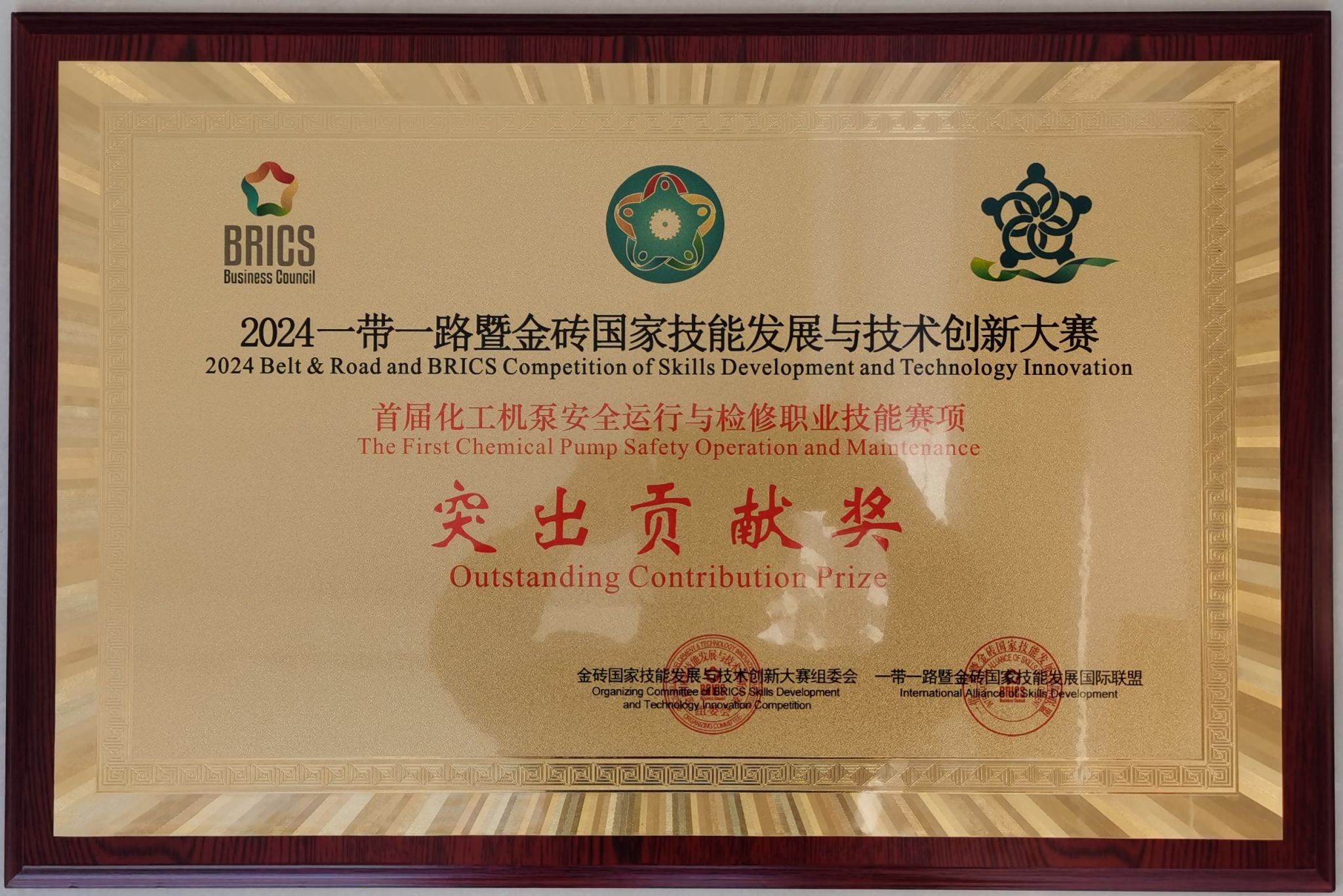 11月1日至5日,2024一带一路暨金砖国家技能发展与技术创新大赛之首届化工机泵安全运行与检修赛项在yl88858永利中国举行,经过三天半的激烈角逐,yl8858永利集团学生罗铭杰、姜世杰凭借稳定的发挥获一等奖第一名(金牌),李宵、秦子达获三等奖(铜牌),指导教师齐云国、王文政获评优秀指导教师,学院获评突出贡献奖。