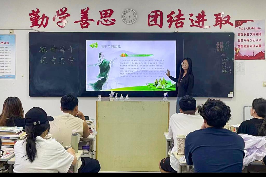 团课过程中,各班级团支书向同学们详细介绍了端午节的起源、历史演变及丰富的文化内涵。通过讲述屈原的爱国事迹、粽子的制作传统等故事,让同学们深刻感受到端午节背后所蕴含的深厚文化底蕴和民族情感。团课的高潮部分,同学们围绕“忆古思今”主题开展互动讨论,畅谈自己对传统文化的理解和认识,分享如何在现代社会中传承和发扬传统文化。大家纷纷表示,通过此次活动,不仅加深了对端午节这一传统节日的理解和认识,更增进了对中华传统文化的认同感。