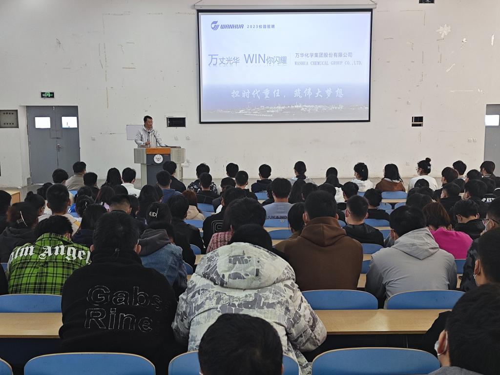 本次宣讲会以万华集团宣传视频作为开端,万华集团招聘人员介绍了万华集团的基本情况,对万华集团企业文化,企业规模,产品输出、工作内容,福利待遇等相关情况向同学们做了宣讲。随后2023届毕业生现场投递了简历,经过简历筛选,当天下午组织了面试。