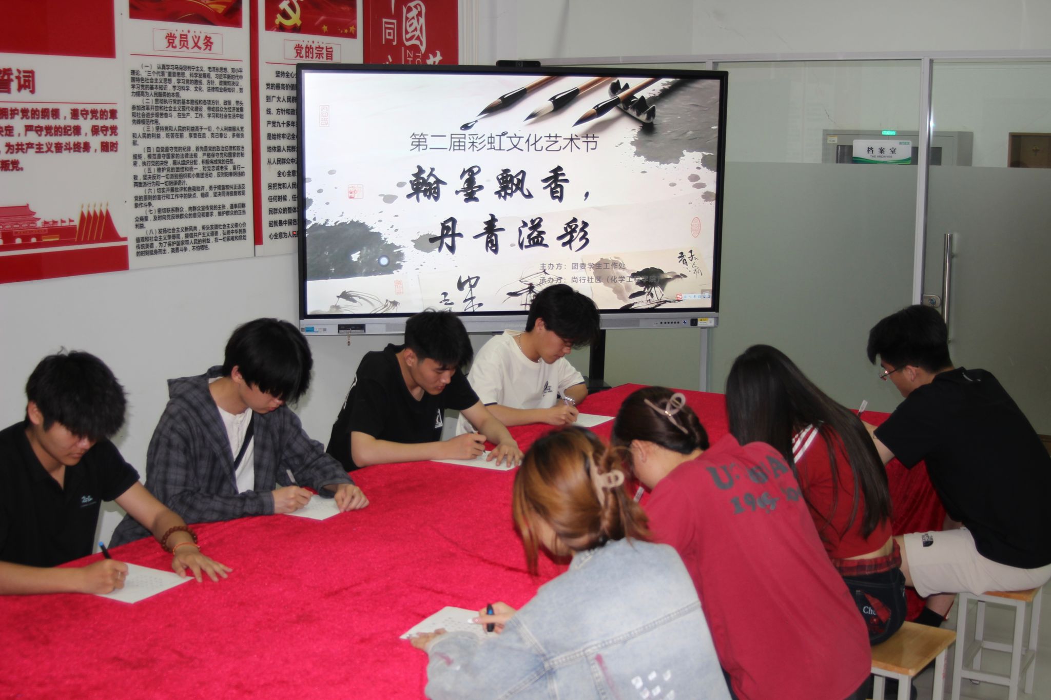 为弘扬中华优秀传统文化,丰富“一站式”学生社区文化内涵,搭建交流互动平台,提升学生人文素养,4月24日至5月13日,尚行社区举办以“翰墨飘香,丹青溢彩”主题社区书法活动,社区100余名学生参与活动。