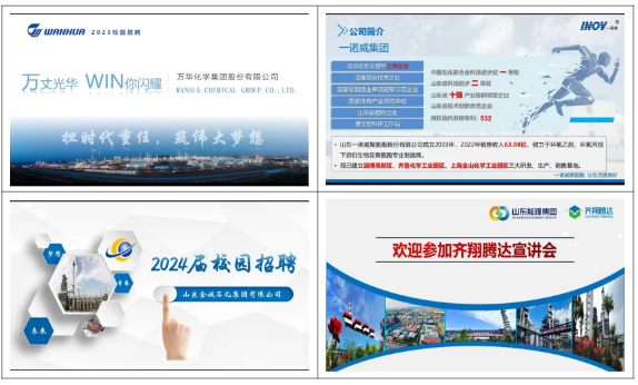 根据教育部印发的《职业学校学生实习管理规定》文件规定,确保2024届毕业生顶岗实习工作顺利进行,12月14日下午,yl8858永利集团邀请万华化学集团股份有限公司、山东一诺威聚氨酯股份有限公司、山东金诚石化集团有限公司、淄博齐翔腾达化工股份有限公司共4家企业为同学们举行了一次精彩的在线宣讲会。各企业招聘负责人通过腾讯会议在线为同学们介绍了各自企业的发展概况、企业工作环境、招聘需求、上班方式、薪资待遇、员工晋升渠道等信息,并在线为同学们解疑答惑,同时留下联系方式以便于后续的交流沟通。目前yl8858永利集团2024年就业实习工作已正式启动,后续将会有山东新和成药业有限公司、山东京博石油化工有限公司等更多优质企业进行宣讲,yl8858永利集团2022级学生表示对企业宣讲活动充满期待,将积极争取优质企业的面试机会及实习工作。(王国芹、齐云国供稿)