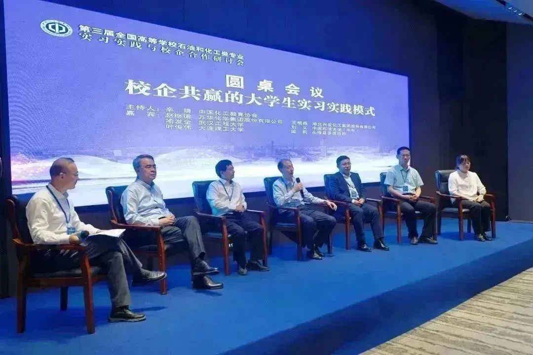 中国化工教育协会秘书长辛晓主持圆桌会议,武汉工程大学副校长喻发全,万华化学集团股份有限公司高级人力资源总监赵继德,大连理工大学化工学院副院长叶俊伟,湖北兴发化工集团股份有限公司监事会主席王相森,中国石油大学(华东)化工学院副院长刘义,永修县委常委、组织部部长梁莉分别从社会不同层面交流了在推动石化类专业实习实践基地建设和校企合作中的经验和看法,并就与会嘉宾关心的相关问题做了解答。