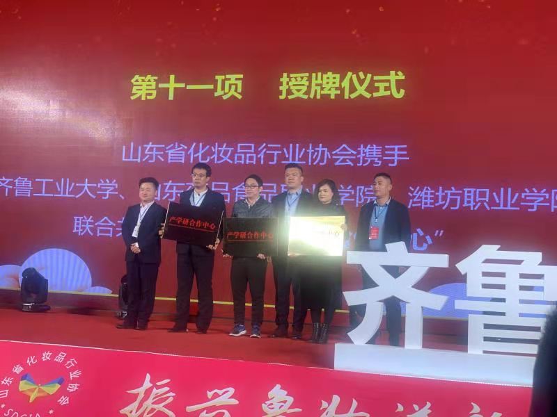 yl8858永利集团一行走访了山东省化妆品行业协会、华熙生物科技股份有限公司和山东福瑞达生物工程有限公司。在山东省化妆品行业协会考察过程中,双方就下一步合作方向达成了一致意见,商定在化妆品产业人才培养、产学研中心运行等方面加深合作,并对双方联合共建的“化妆品产学研合作中心”举行了授牌仪式。