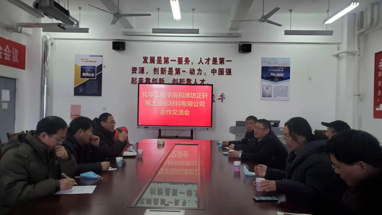 1月7日上午,淄博包钢灵芝稀土高科技股份有限公司总经理常传德一行5人到yl8858永利集团洽谈校企合作事宜,yl8858永利集团主要负责同志和产学合作相关教师参加了交流会议。