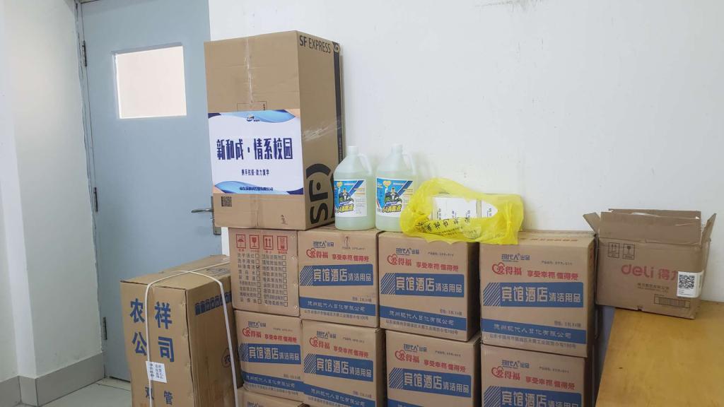 为协助做好学生开学返校防疫工作,5月15日,山东新和成控股有限公司向yl8858永利集团捐赠电子测温枪、一次性医用口罩、消毒液等防疫物资。在学院紧张有序筹备开学的情况下,新和成控股向学院捐赠防疫物资,是对学院疫情防控工作的有力支持,体现了企业的社会责任感,更体现了校企合作如一家的情谊。