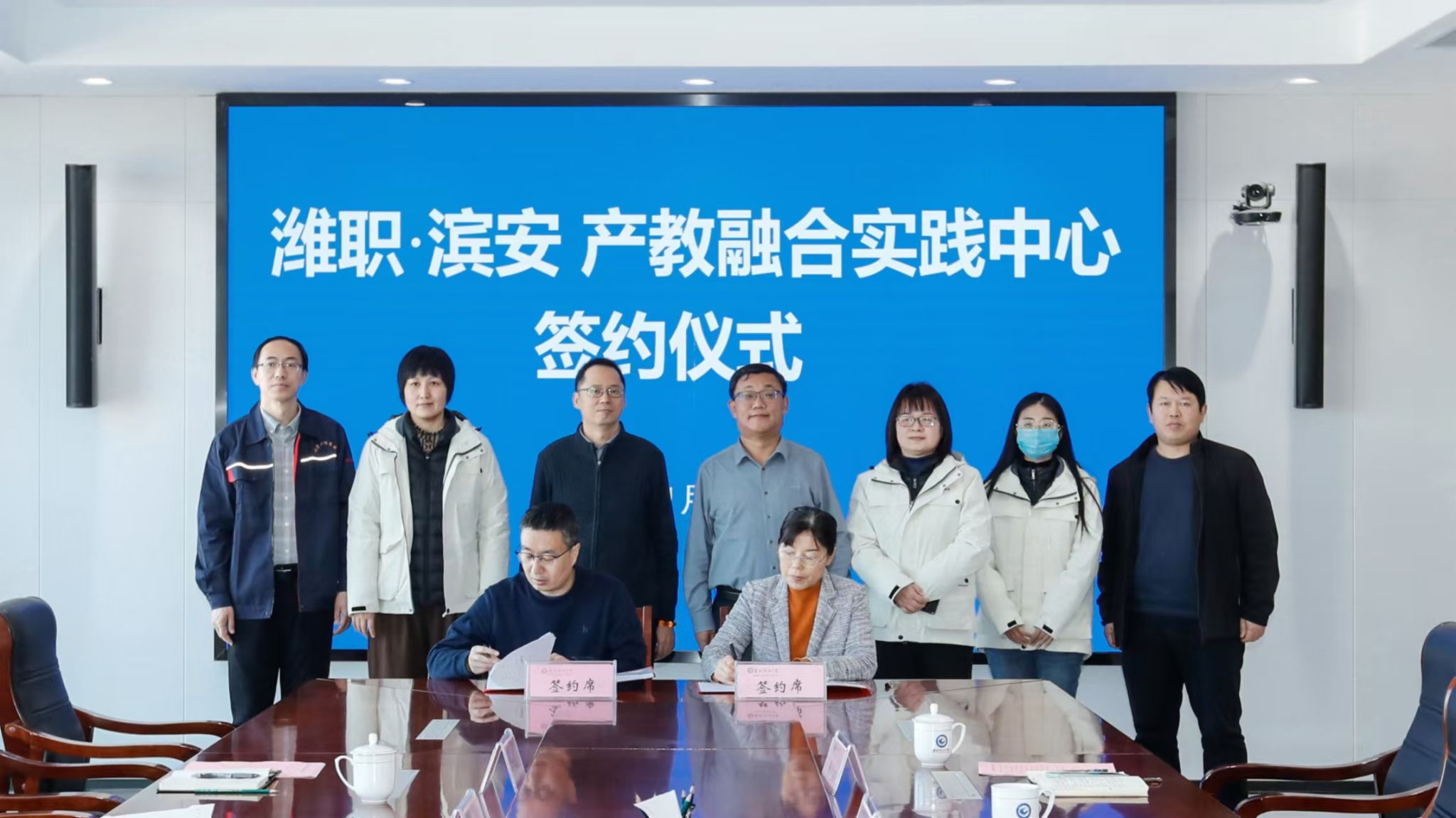 陈美霞与孟建波代表双方签署协议。签约仪式后,孟建波一行参观了产教融合实践中心。