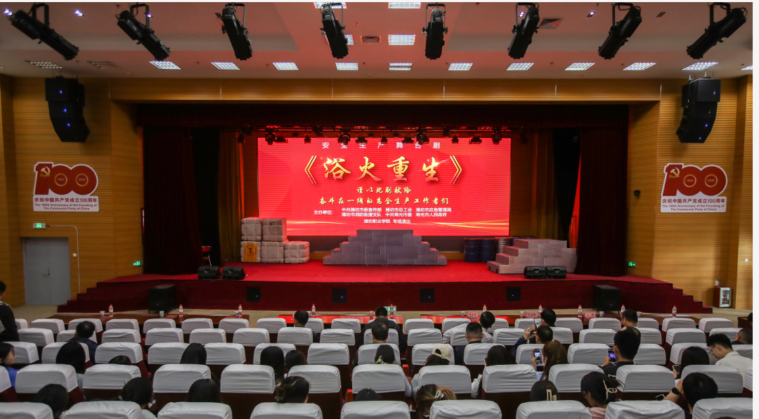 舞台剧《浴火重生》根据真实案例改编,以弘扬"人民至上、生命至上"理念为宗旨,以安全生产事故为素材,讲述了主人公吴永志因工厂没有排除安全隐患,违规再生产导致安全生产事故受牵连被判刑入狱。在这场事故中,他的妻子用生命践行了共产党员的责任与使命,牺牲在火灾现场。出狱后,吴永志成为了工厂的安全队长。他吸取过往惨痛教训,认真抓安全、搞训练,面对同事、女儿的不理解,他坚守在救援一线,为每位安全生产员制定了训练计划,搞突击演习,教给他们必备的安全理论知识。当暴雨来临,工厂面临突发事件,他和同事们用铁肩挑起重担,用行动诠释了安全生产的重要性的感人故事。该剧剧情丰富曲折,扣人心弦,视觉冲击感、现场代入感强烈,引起观众强烈共鸣,受到观看师生的高度赞扬。通过观看舞台剧使全体师生对安全生产的重要性有了更直观、更深刻的认识,对于强化安全生产“红线意识”,弘扬法治精神,有效防范和遏制重特大事故、引导大家不断提高应急处置能力,保障生命财产安全,促进校园安全稳定具有积极的指导意义。