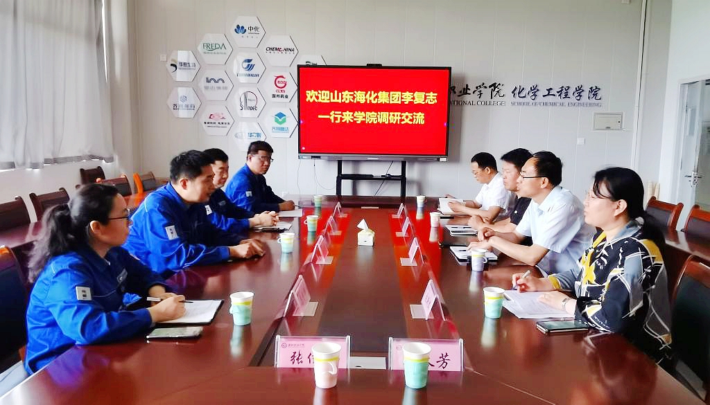 5月31日上午,山东海化集团有限公司纯碱厂人力资源部部长李复志、人力资源部培训主管马月华、安全部副部长张海峰、生产管理部高级主管孙中杰一行4人到yl8858永利集团考察交流,洽谈校企合作事宜,yl8858永利集团主要负责人及产学合作相关人员参加座谈。