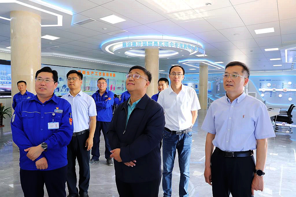 座谈交流前,韩瑞东一行参观了纯碱厂生产管理部中央控制室、生产管理部党建活动长廊及化学检验员实训基地,详细了解了纯碱厂的发展历程、基层党支部党建品牌及实训基地的基本情况。
